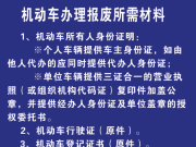深圳市汽车报废个人车:1.机动车行驶证(原件);2.机动车登记证(原件);3.车辆牌照;4.机动车所有人身份证(原件+复印件)5.事故车辆(特殊车辆)证明材料。深圳市汽车报废公司车:1.机动车行驶证(原件);2.机动车登记证(原件);3.车辆牌照;4.加盖公章的营业执照(复印件)。